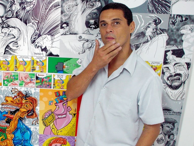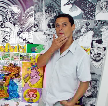 Rezende em seu Estúdio Zarabatana junto com Dada Jaques. Ano 2000